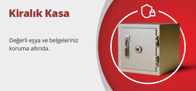 Kiralık kasalardan bir defaya mahsus olmak üzere anahtar depozito bedeli alınmakta ve anahtarı iade etmeniz durumunda depozito bedeli tarafınıza geri ödenmektedir.