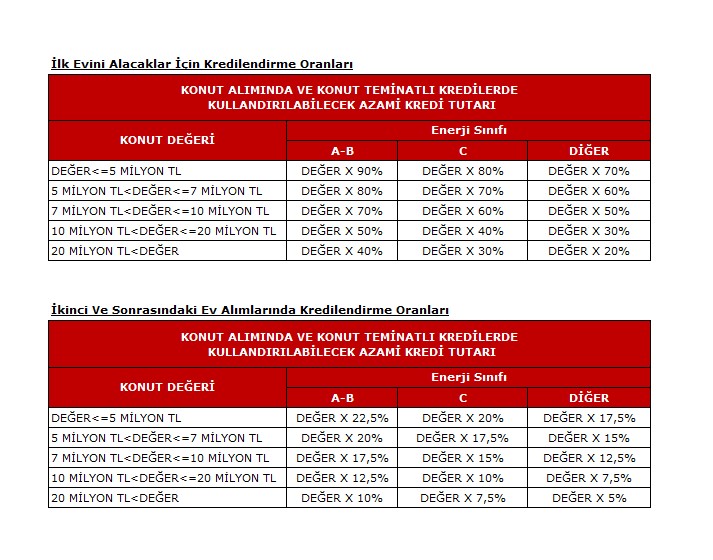 Satın almak istediğiniz konutun %90’ına kadar kredilendirme yapılmaktadır. Konut kredilerinde, kredilendirme tutar ve oranları Bankacılık Düzenleme ve Denetleme Kurulu (BDDK)’nın 29.01.2026 tarihli kararı kapsamında belirlenmiştir.